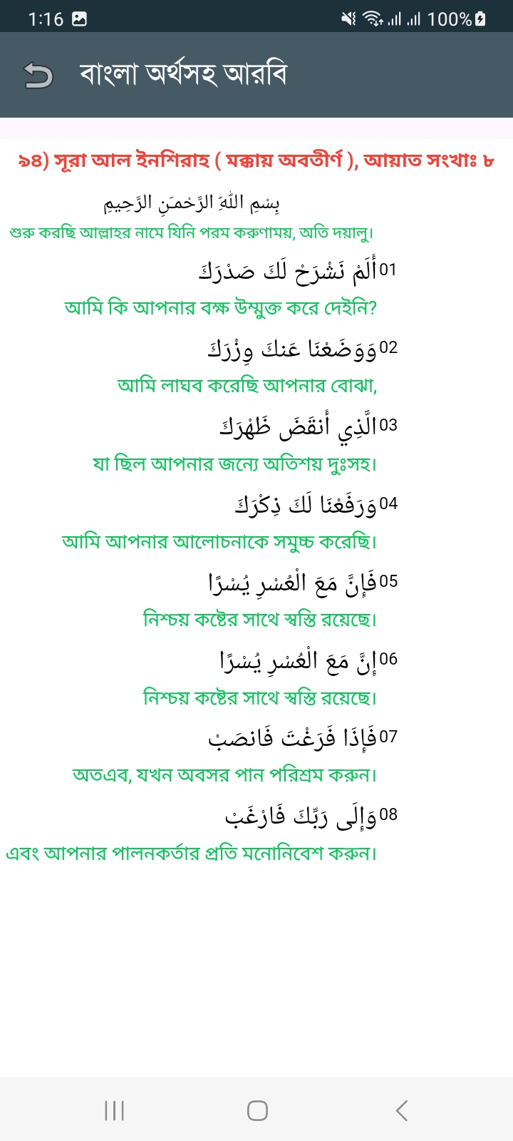 Tags: অমূল্য ভাণ্ডার, অর্থ, আমল ও ফজিলত, আরবি, আরবী অডিও, ইসলামিক জ্ঞান, উচ্চারণ, এক অ্যাপে!, এখন, তাফসীর, বাংলা অর্থসহ আরবী অডিও, শানে নুযূল পটভূমি ও বিষয়বস্তু, সুরা আল-ইনশিরাহ